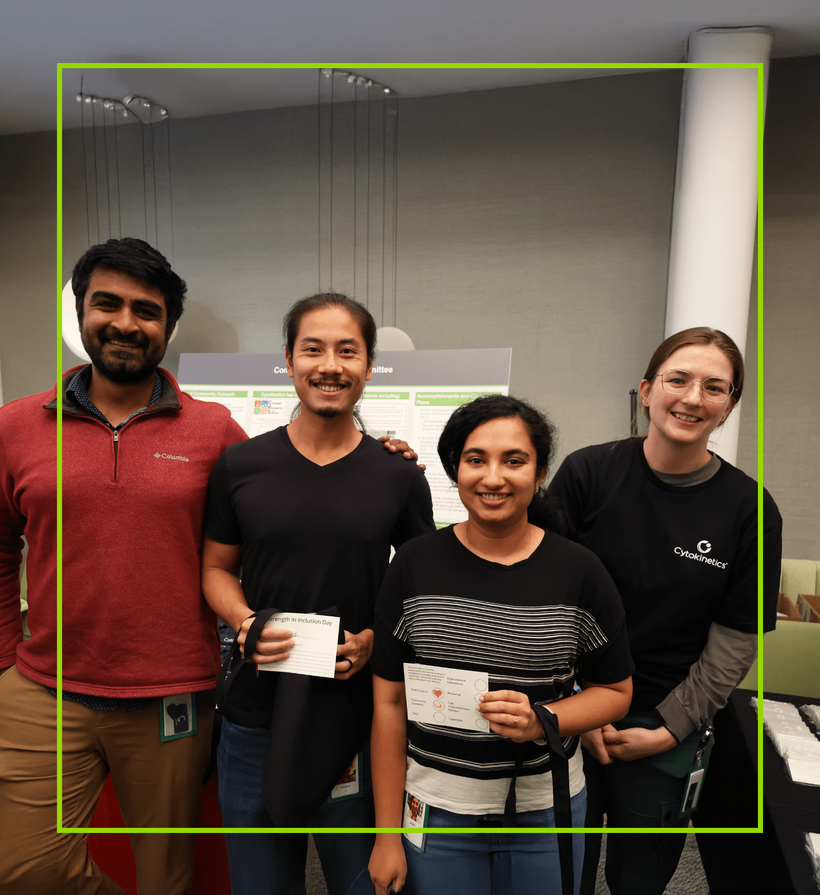 A powerful way we promote awareness and create safe spaces is through employee resource groups (ERGs). Cytokinetics currently has two employee resource groups, which are voluntary, employee-led, and promote a sense of belonging and inclusivity. ERGs lead events and initiatives that elevate awareness to ensure we uphold the “R” in DEIR and help create connection among employees.
